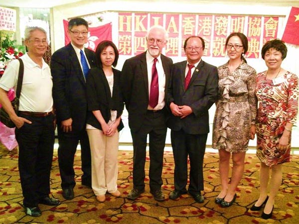 2014年5月17日,原理事长陈荣应邀出席香港发明协会的第四届理监事就职典礼,宴会上陈荣(右三)与香港发明协会会长谢甘肃方(中央者)及该会负责人及嘉宾合影