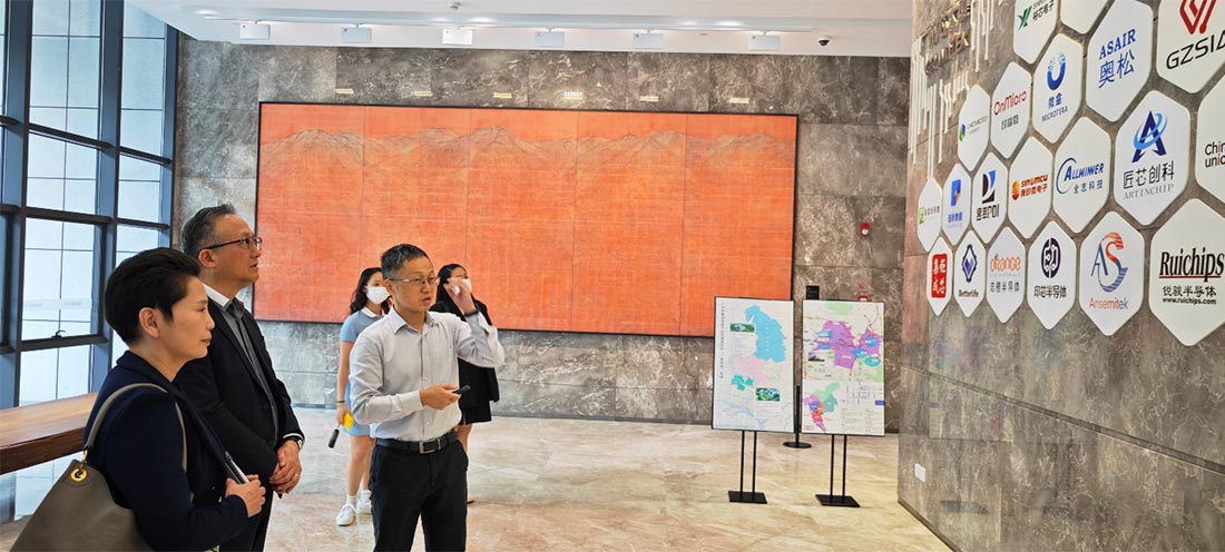 第六站,一行拜访了广州乐飞产业运营管理有限公司,获总经理蔡岳、高级经理张高峰的接待,参观了由该司负责运营的“芯大廈”,园区引进40余家国內半导体领域的行业翹楚,已成功获批国家级孵化器,在晶片设计企业的集聚上形成了浓厚的产业氛围。大家在合作的可行性上作了交流。