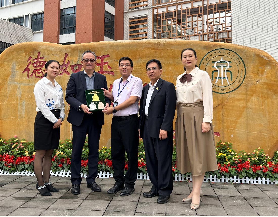 第四站,黎栢強与尤肖其和广州科融文化教育科技有限公司总经理李云莉、黃埔教育集团(广州)有限公司副总经理吴秋萍一起拜访了广州市黃埔玉泉学校,获校长戴亭、副校长梁宇恩接待,一行参观了校园,并就双方探讨了辦研学团及对接澳门的姐妹学校作了沟通。