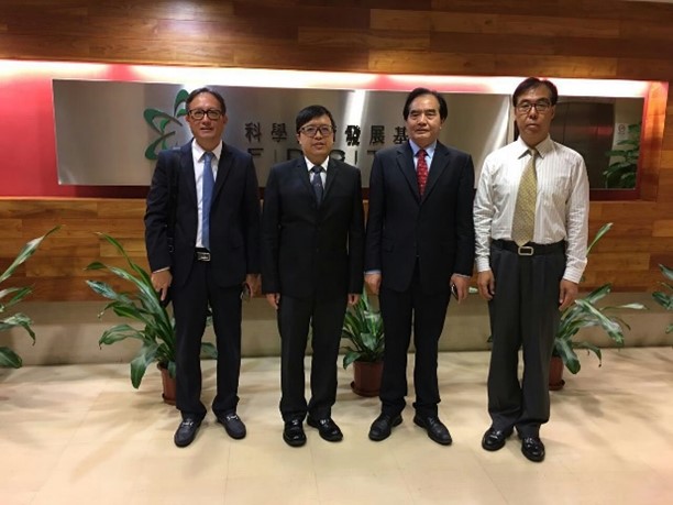 余华荣、王景东与黎栢强拜访科学技术发展基金后与主席马志毅(左2)合影