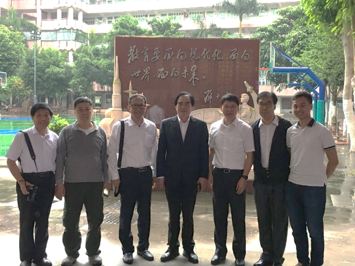 余华荣和王景东参观了濠江中学,获副校长陈步倩的热情接待,并在校园合影。