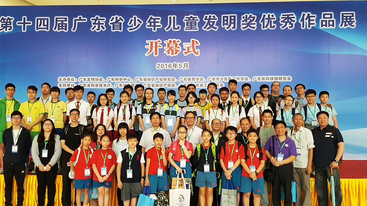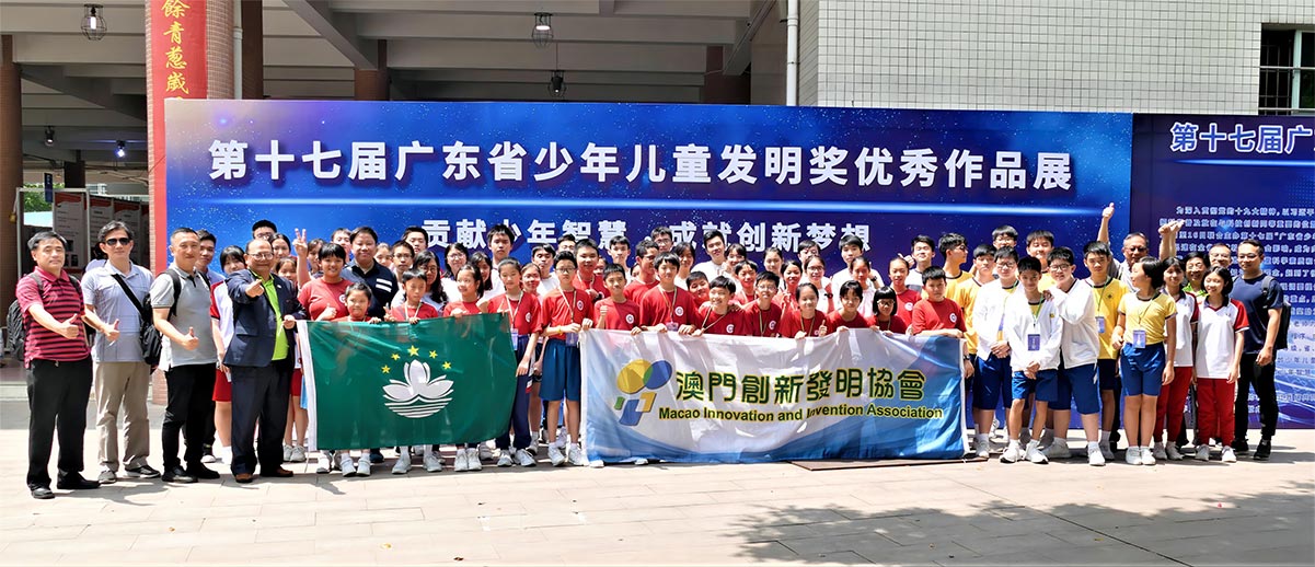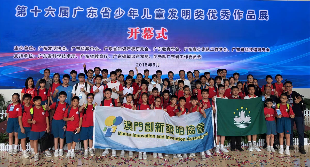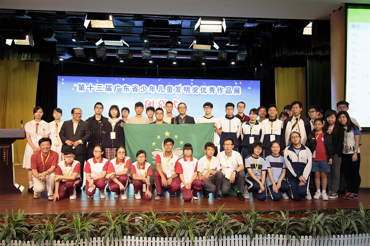 本澳参与第十六届广东省少年儿童发明奖优秀作品展的师生与本会负责人在开幕式上合影