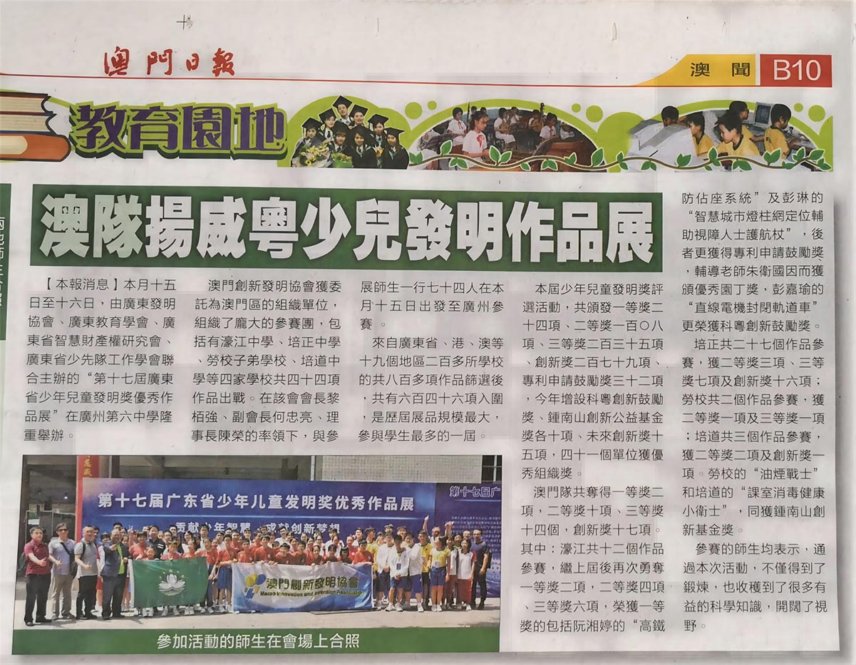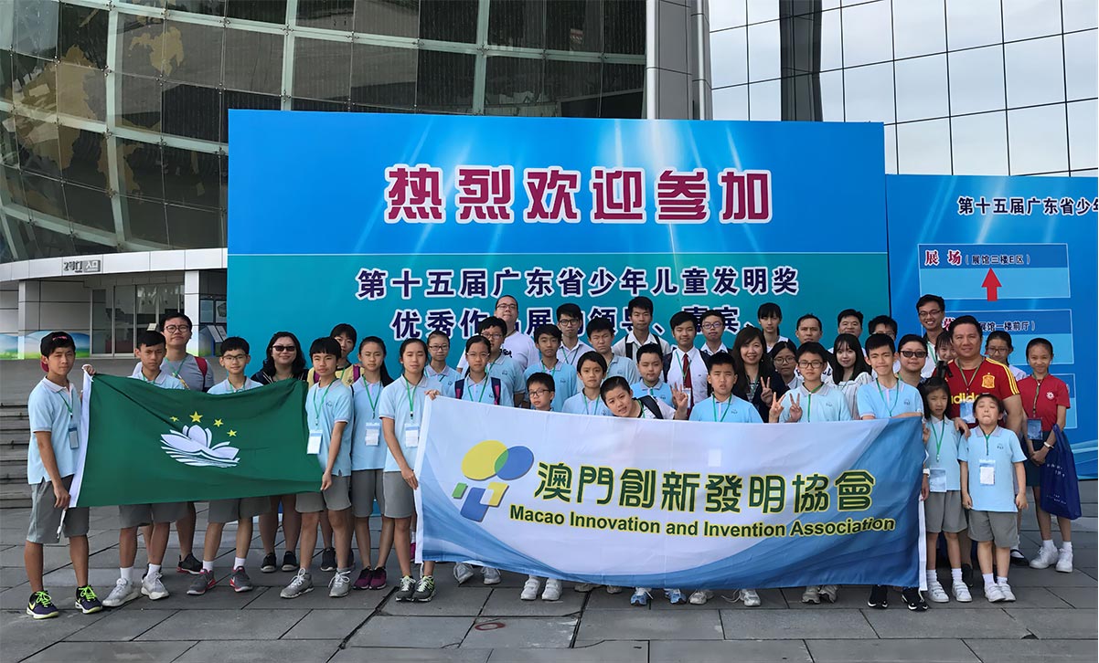 本澳参与第十五届广东省少年儿童发明奖优秀作品展的师生与本会负责人在会场外合影