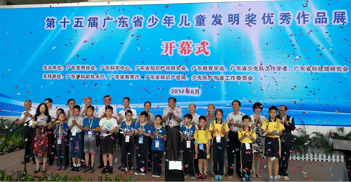 理事长陈荣(后排右1)应邀出席了第十五届广东省少年儿童发明奖优秀作品展开幕式