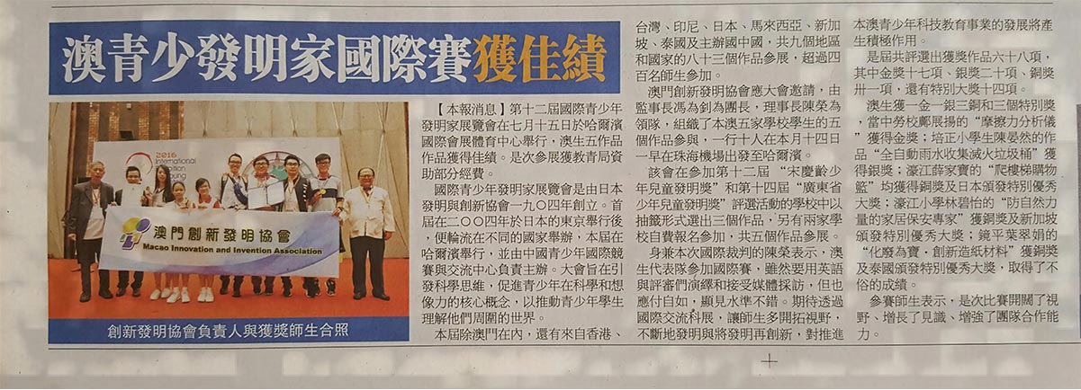 2015、2016及2017本会均有组织学生参加,2018没有派队参加。多年来累计获奖作品有15个,参与了上述活动有33人,共获得了金奖3个、银奖4个、铜奖9个、特别大奖15个。取得的成绩都不错。上述参展均获得教青局资助部份经费。