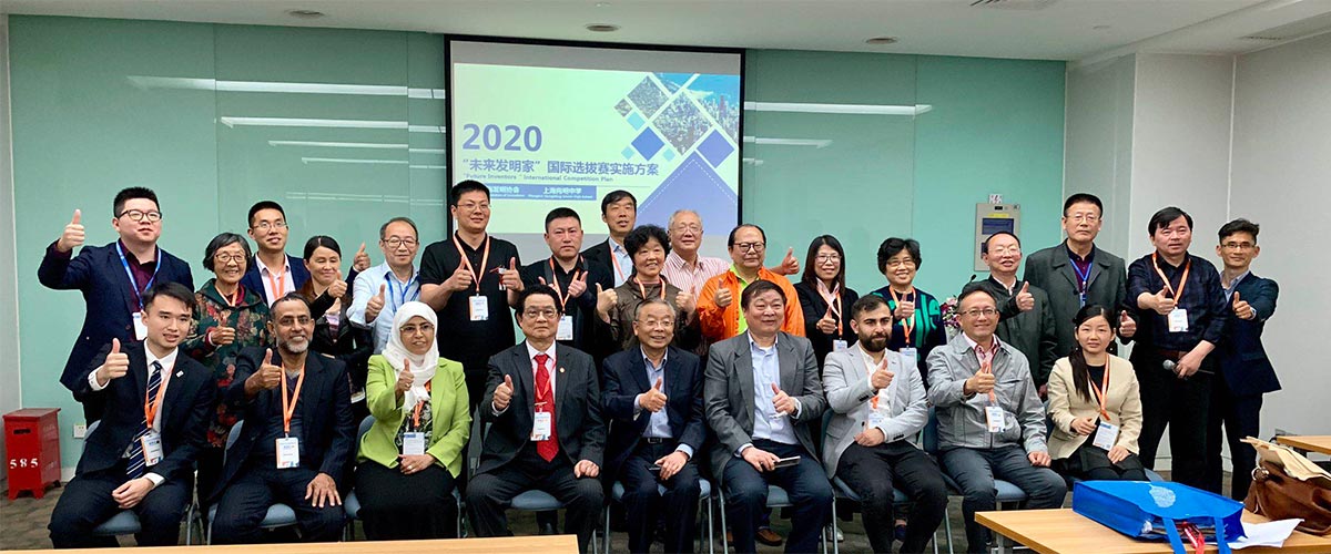 参与“2020未来发明家-国际选拔赛实施方案论坛”上的嘉宾与上海发明协会负责人合影