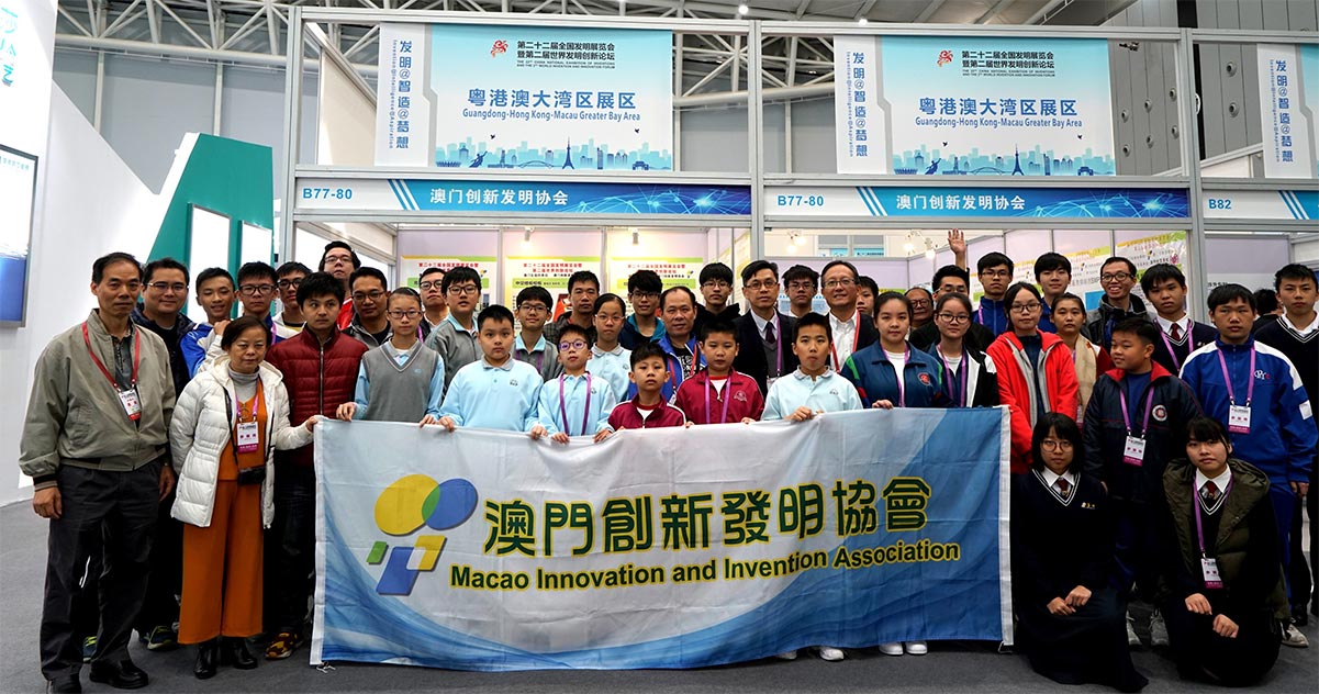 发明展澳门区师生、会员代和本会负责人表在展位前合影
