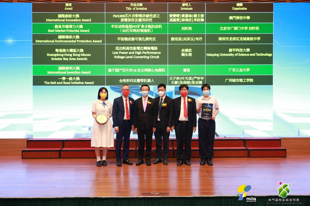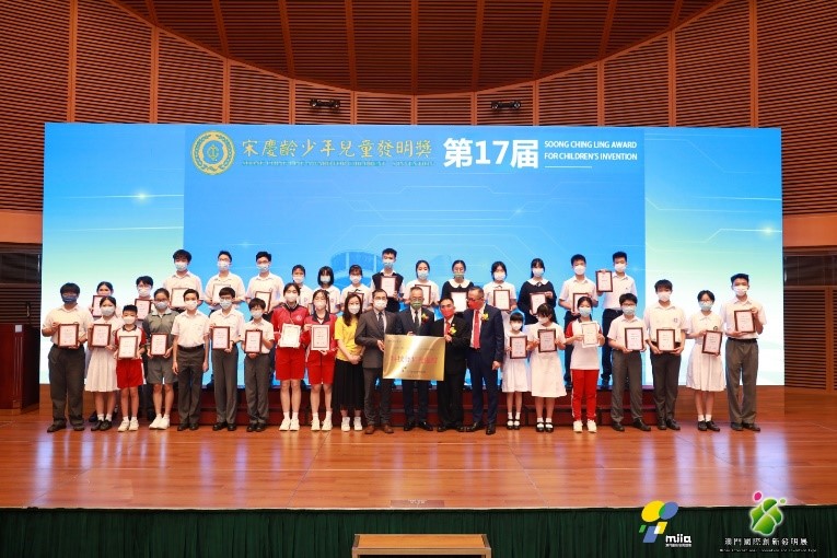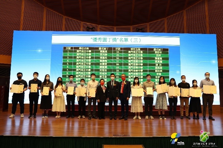 嘉宾向澳门劳校中学的学生颁发金奖及国际创新大奖