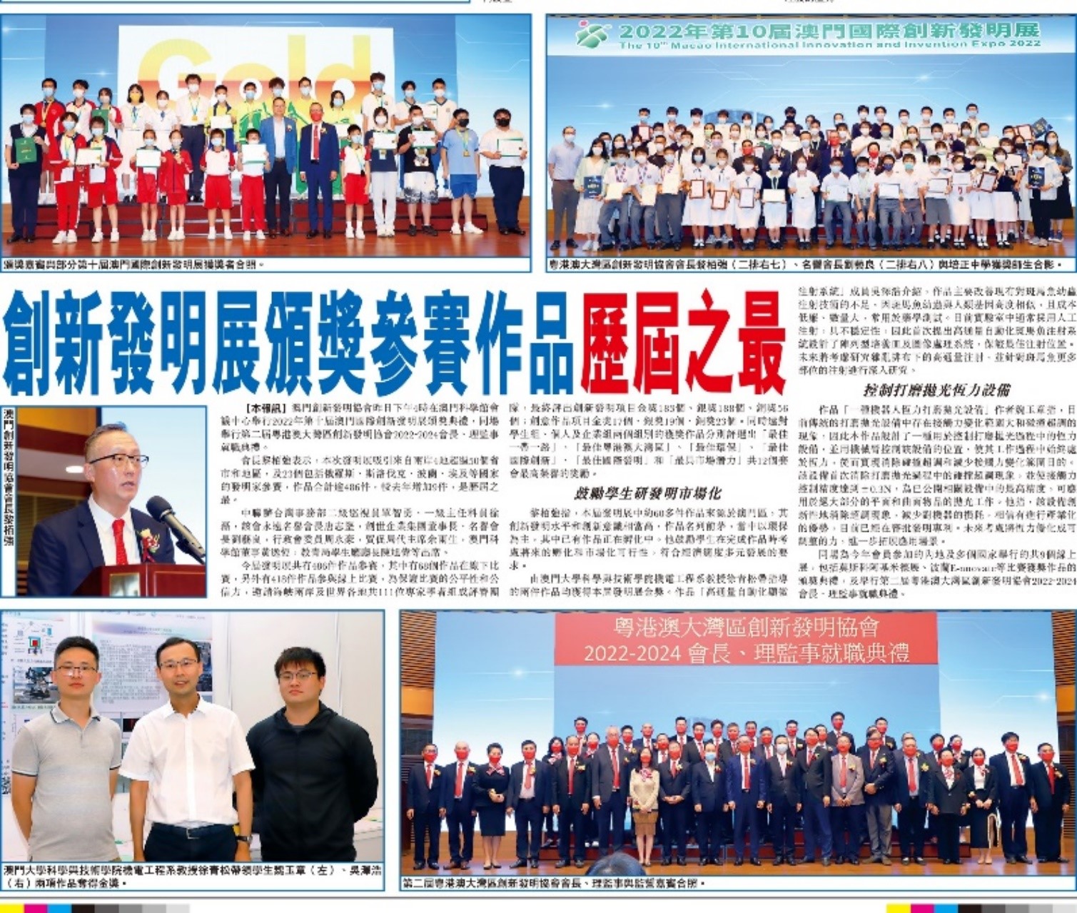 在2022年10月15日,于第10届澳门国际创新发明展假澳门科学馆举行的颁奖典礼上进行了粤港澳大湾区创新发明协会2022-2024会长、理监事就职典礼