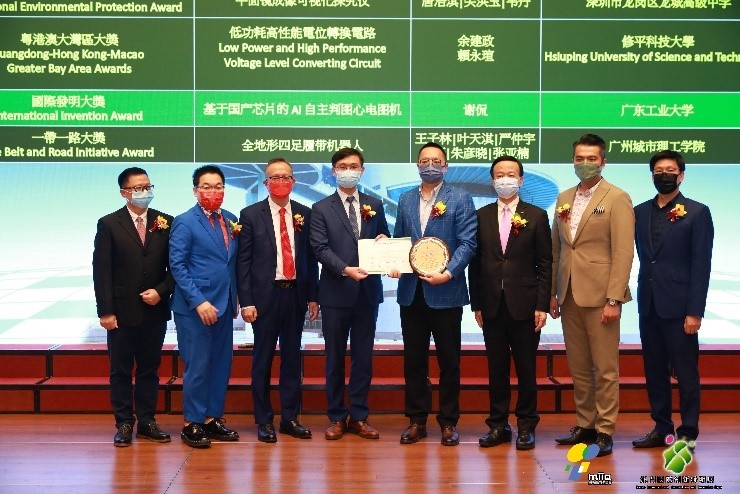 嘉宾向广东工业大学谢侃博士颁发金奖及国际发明大奖