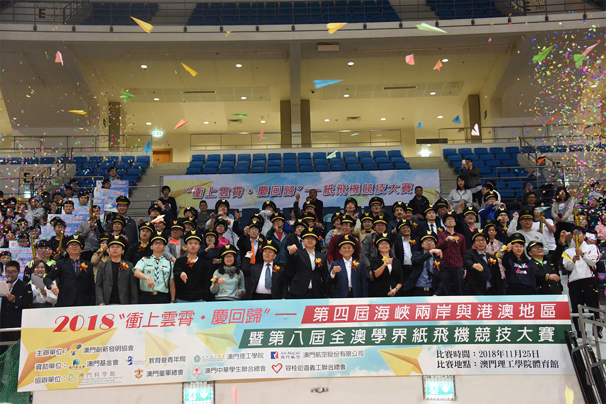 多年以来通过以庆祝澳门特别行政区成立的大喜日子邀请海峡两岸及港澳地区的学生一起参与活动,冀体现和平统一的共同目标能够早日实现。 自2011 至2018 年连续八年举办“庆回归.冲上云霄--全澳学生纸飞机大赛”暨“两岸四地学生纸飞机大赛”。基于从国情及活动的规格、影响力和性质来考虑,今年将更名为: “冲上云霄.庆回归” --第五届海峡两岸及粤港澳大湾区暨第九届全澳学界纸飞机竞技大赛,活动内容有多项科普比赛。多年来累计参与的学生人数已超过2,500人,累计获累计如下:金牌 73个、银牌 66个、铜牌 67个,优异奖 50个。