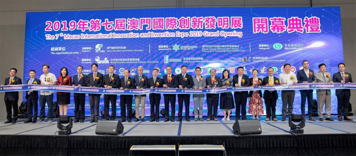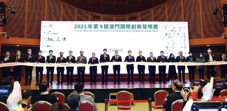 第9届澳门国际创新发明展开幕式上,澳门中联辦有关领导、澳门特区政府相关部门的官员代表及社会知名人士参与了剪彩仪式