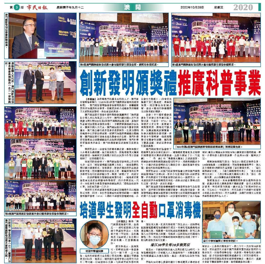 (八) 10 月 29 日(星期日)下午四时,举行 “第 11 届澳门国际创新发明展” 颁奖典礼 (会在网上进行直播) ;