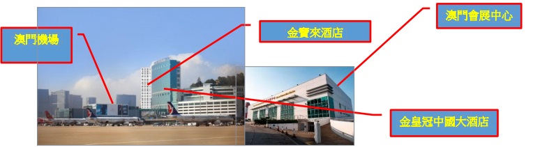 澳门会展中心 (凼仔鸡颈马路 1238-1304 号,澳门国际机场对面, 距大会推荐的金皇冠中国大酒店约 60 米) 。